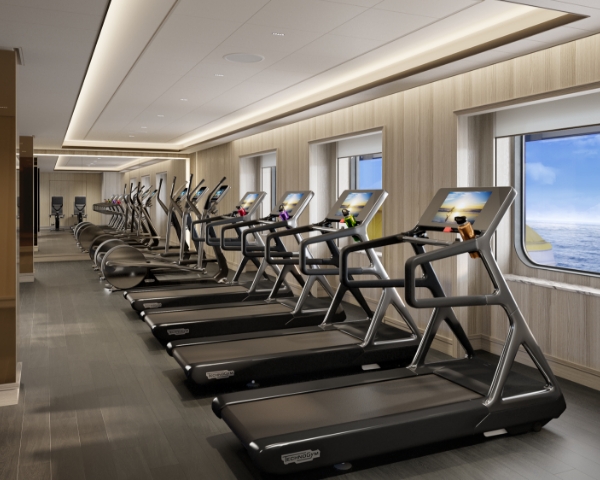 The Fitness Studio is home to a health and wellness program that integrates fitness with lectures and nutritional guidance customized for each guest. With a selection of machines such as bikes, rowers and ellipticals as well as free weights and other Technogym equipment, guests can bring their regular exercise routine on board.
