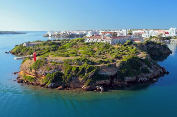 Balearic Island with city on it, surrounded by water.