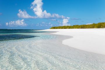 White sandy beach, with ocean shoreline.