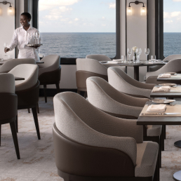 Designed with an inviting balance of privacy and connection, Tides is the spacious main restaurant aboard Ilma. Intimate seating, warm lighting and a relaxed sense of ease set the tone for quiet meals or shared moments. Evolving menus draw on regional flavors and seasonal ingredients for dining with connection to the destinations.