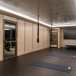 The Fitness Studio offers a holistic approach to wellbeing, with personalized guidance, movement-focused programming and optional lectures that support a healthy voyage. A selection of Technogym equipment enables familiar routines or new forms of exercise, all within a calm, contemporary setting designed for strengthening, stretching and reconnecting with the body.