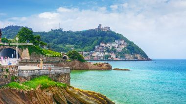 Bright blue waters meet the coastline in San Sebastián, Spain