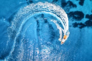 Speedboat circling the water.