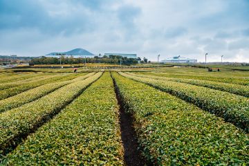 Rows of green crops on a farm.