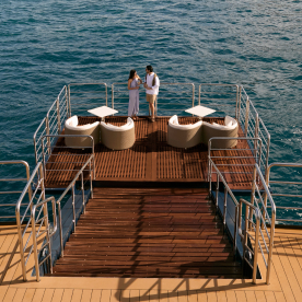 While at anchor in select destinations, head to the Marina to enjoy kayaking and paddleboarding, or simply relax on a sun lounger floating on the sea.
