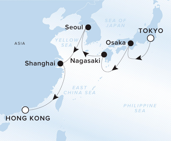 Considered one of the great food capitals of the world, Osaka merits in-depth exploration, while Japan’s UNESCO-listed castles of Himeji, Nara, and Kyoto are easily also within reach. South Korea’s dynamic capital of Seoul boasts its own iconic palaces along with traditional villages offering authentic cuisine and crafts. During an overnight in Shanghai, experience the highlights of day and night in this exciting metropolis before sailing for Hong Kong.