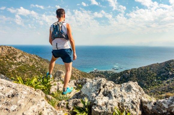 Hike from a Byzantine-era convent on a mountainside down to a coast village along a scenic trail.