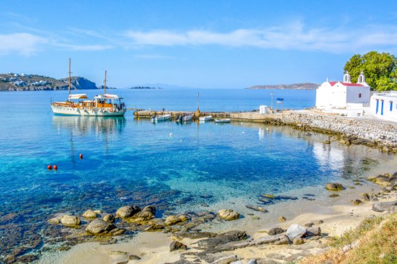 Enjoy swimming and lunch at a small, rural islet before returning to Mykonos to relax at a luxe beachside club.