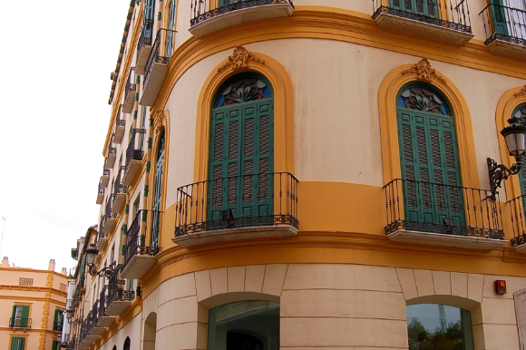 The foreground of a typical building with balconies in Mediterranean style.
