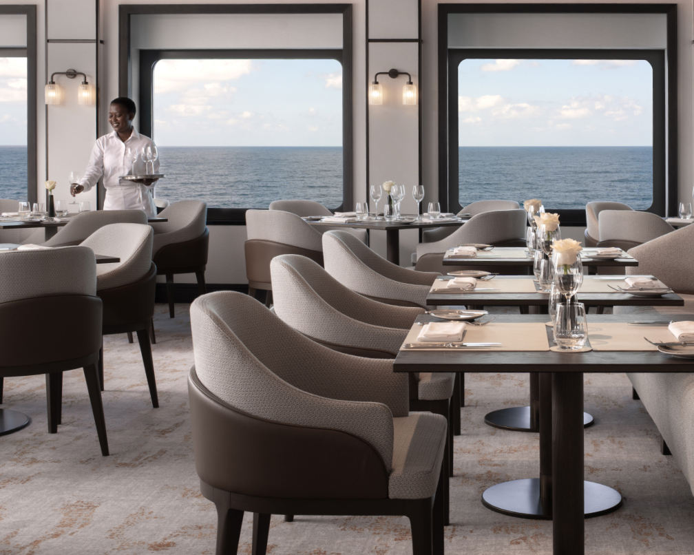 Designed with an inviting balance of privacy and connection, Tides is the spacious main restaurant aboard Ilma. Intimate seating, warm lighting and a relaxed sense of ease set the tone for quiet meals or shared moments. Evolving menus draw on regional flavors and seasonal ingredients for dining with connection to the destinations.