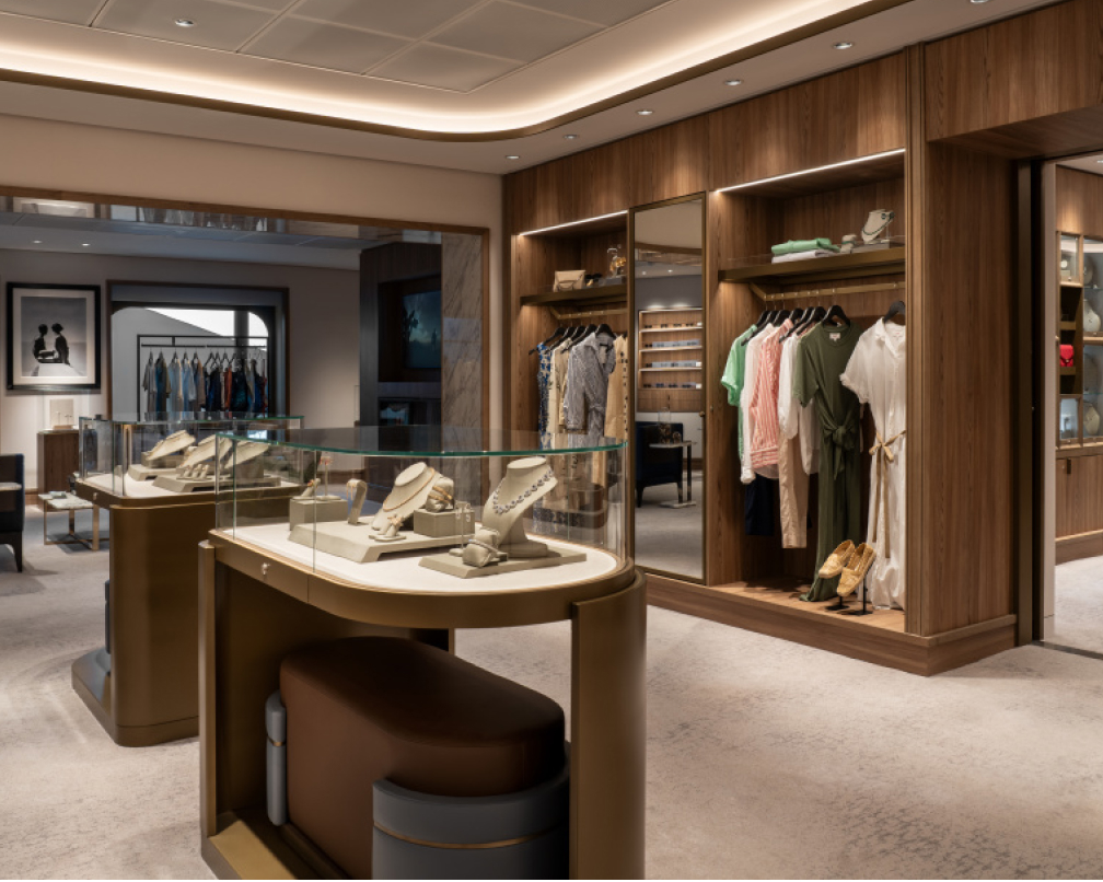 The Boutique features a curated selection of high-end sportswear, designer apparel, jewelry and leather goods, offering guests the opportunity to explore thoughtfully chosen pieces throughout their journey. On select voyages, the shopping experience is enhanced by exclusive collaborations with local artisans who share their craft and present distinctive creations inspired by the regions visited.